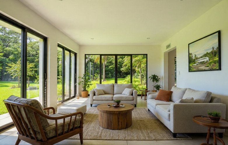 Adaptation tropicale : La conception favorise une excellente circulation de l’air (ventilation naturelle) et l’utilisation de la lumière, réduisant potentiellement le besoin de climatisation artificielle.